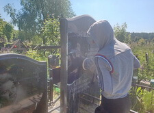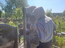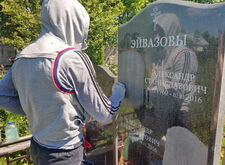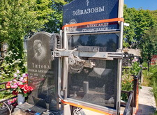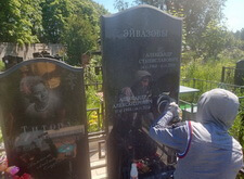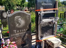 В ходе этой работы нам предстояло заменить два уже нанесённых на памятник портрета. Делавшие их люди не согласовывали изображения с клиентом, и привезли на могилу памятник с уже выбитыми фотографиями и надписями. К нам заказчик обратился с просьбой всё-таки сменить фотографии, а так надгробье смотрелось изначально.